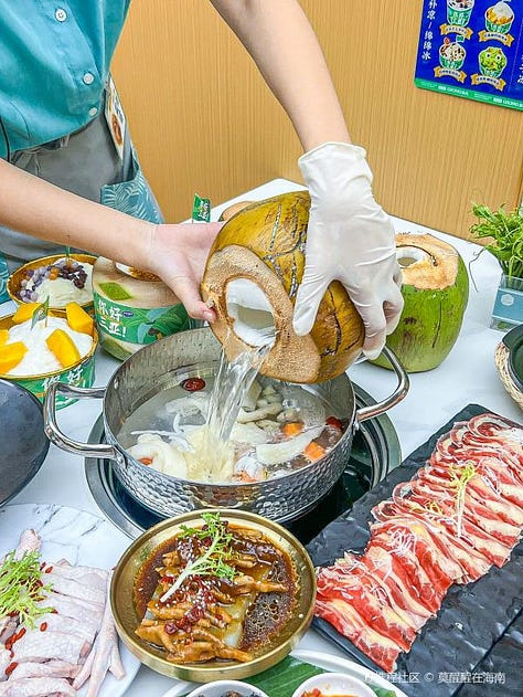 코코넛 워터 + 닭 훠궈.