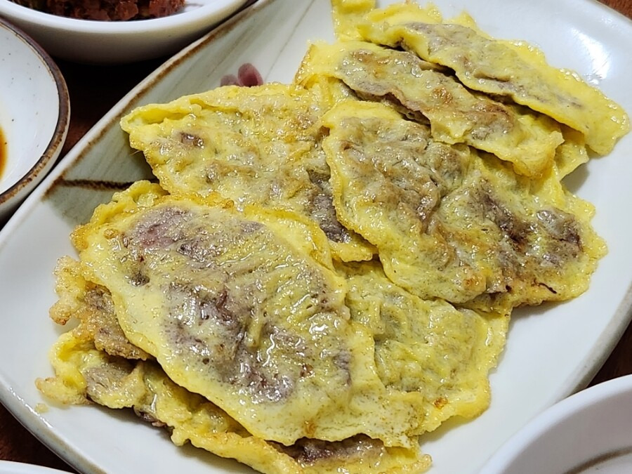 얇게 썬 소고기에 계란옷을 입혀