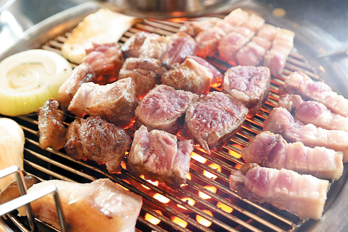 숯불에 구워 먹는 것이 특징입니다.